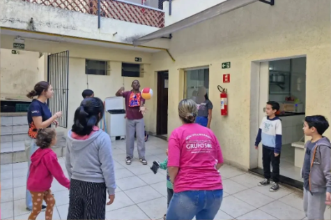 Brincadeiras de dia das crianças na casa de acolhimento.